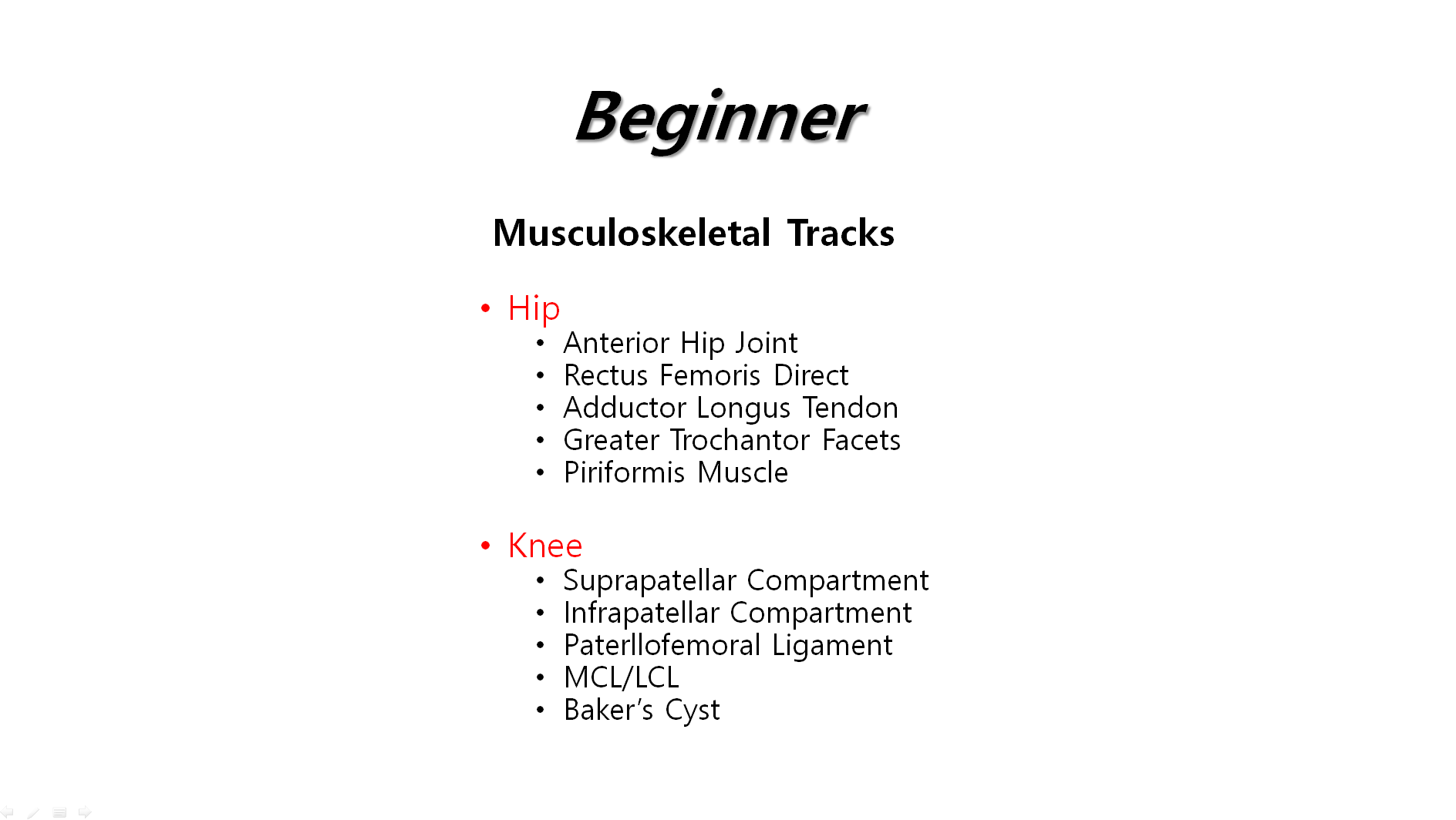 Intermediate Advanced groupÀº °üÀý¿¡ ´ëÇÑ ÃÊÀ½ÆÄ°Ë»ç´Â Æ÷ÇÔµÇÁö ¾Ê°í °üÀý ÁÖº¯ÀÇ ¶Ç´Â ±ÙÀ§ºÎÀÇ ¹Ì¼¼½Å°æÀ» °üÂû. ½Ç½ÀÇÏ´Â ±³À°ÄÚ½º·Î °üÀýÃÊÀ½ÆÄ°Ë»ç´Â ¿øÈ°Çϳª neural prolotherapy¸¦ º¸´Ù È¿°úÀûÀ¸·Î Çϱâ À§ÇÑ °øºÎ¸¦ ¿øÇϽô ºÐµéÀ» À§ÇÑ ±³À°ÀÔ´Ï´Ù. Âü¿©ÇϽô ºÐµéÀº º»ÀÎÀÇ ´É·Â ¶Ç´Â Èñ¸Á¿¡ µû¶ó ÇϳªÀÇ °úÁ¤À» ¼±ÅÃÇÏ¿© ½ÅûÇÏ½Ã¸é µË´Ï´Ù.(µî·ÏÇϽǶ§ ÃʱÞ/Áß»ó±ÞÀ¸·Î ¸»¾¸ÇØÁÖ¸é µË´Ï´Ù.)