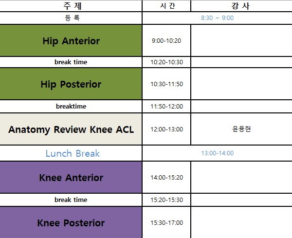¾È³çÇϽʴϱî. ±Ù°Å À§ÁÖ·Î Ä¡·á¿Í Áø´ÜÀ» ÁöÇâÇÏ´Â ½Ã¸®¾Ç½º ÃÊÀ½ÆÄ ¿öÅ©¼¥ÀÔ´Ï´Ù. 8¿ù¿¡ ¹Ì·ç¾îÁ³´ø ½Ã¸®¾Ç½º ÃÊÀ½ÆÄ ¿öÅ©¼¥ Hip &Knee part ¸¦ 11¿ù¿¡ ½ÃÇàÇÏ°Ô µÇ¾î ¾È³» µå¸³´Ï´Ù Basic ±×·ì°ú Intermediate Advanced ±×·ìÀ¸·Î ³ª´©¾úÀ¸¸ç Âü¿©ÇϽô ¼±»ý´ÔµéÀÇ Çʿ信 µû¶ó ¼±ÅÃÇϽðí, °¢ÀÚÀÇ ¼öÁØ¿¡ ¸Â´Â ³»¿ëÀ¸·Î ÄÚ½º°¡ ÁøÇàµË´Ï´Ù °¢°¢ÀÇ ±×·ì¿¡¼ ´Ù·ç°Ô µÉ ³»¿ëÀº ¾Æ·¡¸¦ ÅëÇØ È®ÀÎÇϽðí, ±×·ìÀ» ¼±ÅÃÇØ¼ ½ÅÃ»ÇØ ÁÖ½Ã¸é µË´Ï´Ù. Intermediate°ú Advanced ±×·ìÀº, ³»¿ëÀº °°À¸³ª ±×³¯ ¿À½Å ¼±»ý´ÔµéÀÇ Âü¿©µµ¿¡ µû¶ó °¢°¢ ´Ù¸£°Ô ÁøÇàµÉ ¿¹Á¤ÀÔ´Ï´Ù(´õ Èñ¸ÁÇϽô ³»¿ë Áß½ÉÀ¸·Î). Âü¿©ÇϽô ¼±»ý´Ôµé²²¼´Â ÇÊÈ÷ ¸¶½ºÅ©¸¦ ÁöÂüÇØÁֽñ⠹ٶø´Ï´Ù.(¸¶½ºÅ©, ¼Õ¼Òµ¶Á¦, ¹ß¿Ã¼Å© ¿¹Á¤). ȯºÒ Á¤Ã¥Àº ¿ø·¡ 1ÁÖÀÏ Àü±îÁöÀÌÁö¸¸, Äڷγª Áõ»óÀÌ ´À²¸Áö°Å³ª, È®ÁøÀÚ¿ÍÀÇ Á¢ÃËÀÌ ¹ß»ýÇÒ °æ¿ì¿¡´Â ºÒÂüÀǻ縦 Åëº¸ÇØ ÁÖ½Ã±æ ºÎŹµå¸®¸ç, ÀÌ °æ¿ì ¿öÅ©¼¥ ´çÀϱîÁöµµ ȯºÒÀÌ °¡´ÉÇϵµ·Ï ÇϰڽÀ´Ï´Ù. Äڷγª·Î ÀÎÇØ ¼·Î°£ÀÇ ¾ÈÀüÀÌ ÇÊ¿äÇÏ¿© ÃëÇÏ´Â Á¶Ä¡ÀÌ´Ï ¾çÇØ ¹Ù¶ø´Ï´Ù. ÀúÈñ ÃÊÀ½ÆÄ ¿öÅ©¼¥Àº 1³â °úÁ¤ÀÇ ¿öÅ©¼¥ ÄÚ½º·Î ÀÌ·ç¾îÁ®ÀÖÀ¸¸ç, °»ç¼±»ý´ÔÀÌ Ãæ¿ø µÇ¾î ÃÑ £¶ºÐÀÇ °»ç¼±»ý´Ô²²¼ ¿©·¯ºÐÀ» µµ¿Íµå¸®°Ú½À´Ï´Ù. -¼ö°»ý ½ÅûÀº ÃÑ 20¸íÀ¸·Î ÁøÇà µË´Ï´Ù.