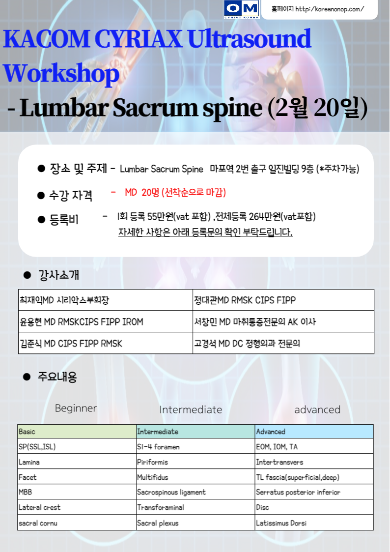 | °ÀǸí : [±Ù°ñ°Ý°è ÃÊÀ½ÆÄ] [2¿ù20ÀÏ]2022³âMusculoskeletal Ultrasound ¿öÅ©¼¥ ¾È³»[Lumbar spine] | |||