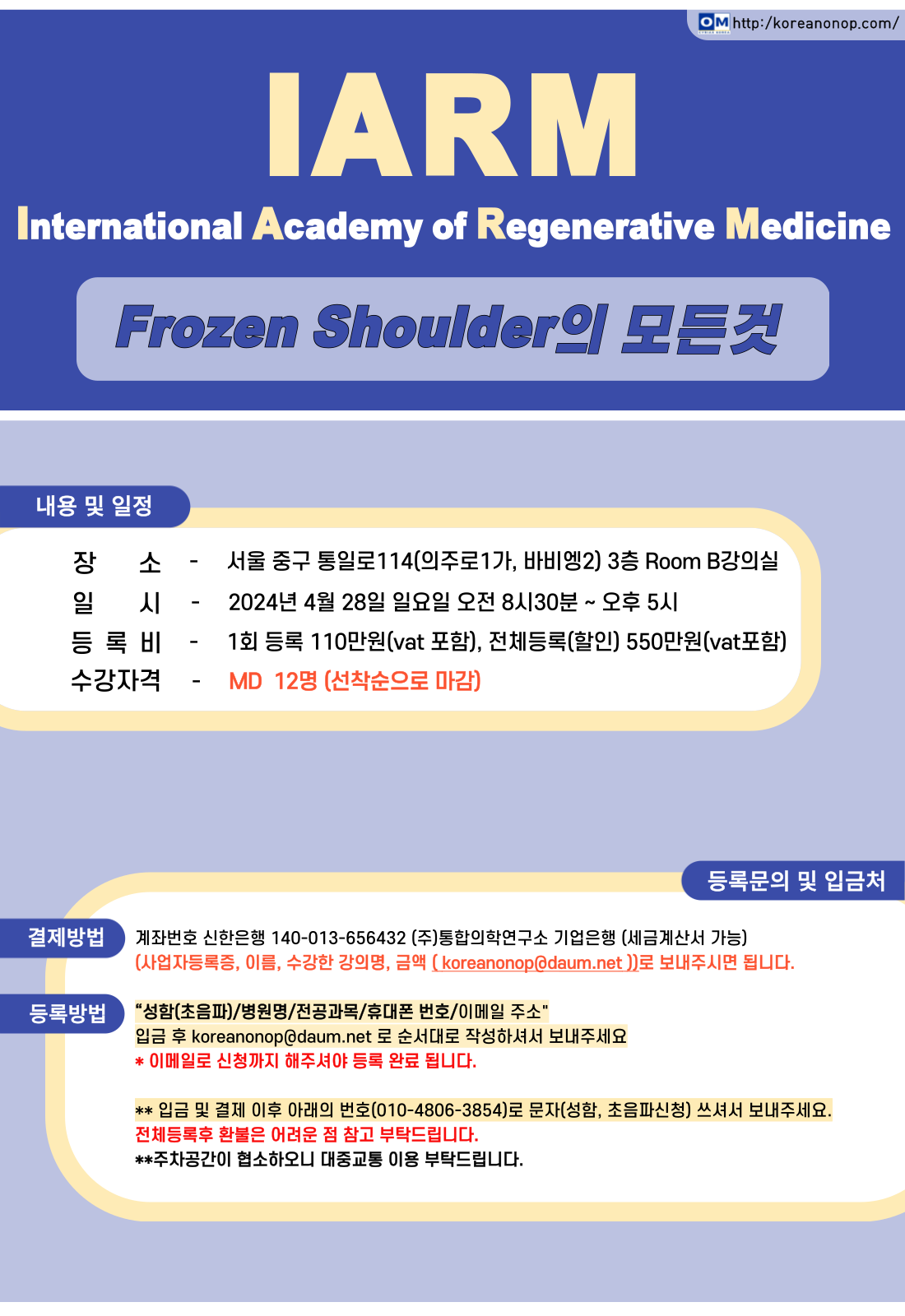 ¾È³çÇÏ½Ê´Ï±î ±Ù°Å À§ÁÖ·Î Ä¡·á¿Í Áø´ÜÀ» ÁöÇâÇÏ´ø ½Ã¸®¾Ç½º ÃÊÀ½ÆÄ ¿öÅ©¼¥ÀÌ IARM(International Association of Regenerative Medicine)À¸·Î º¯°æ µÇ¾ú½À´Ï´Ù.