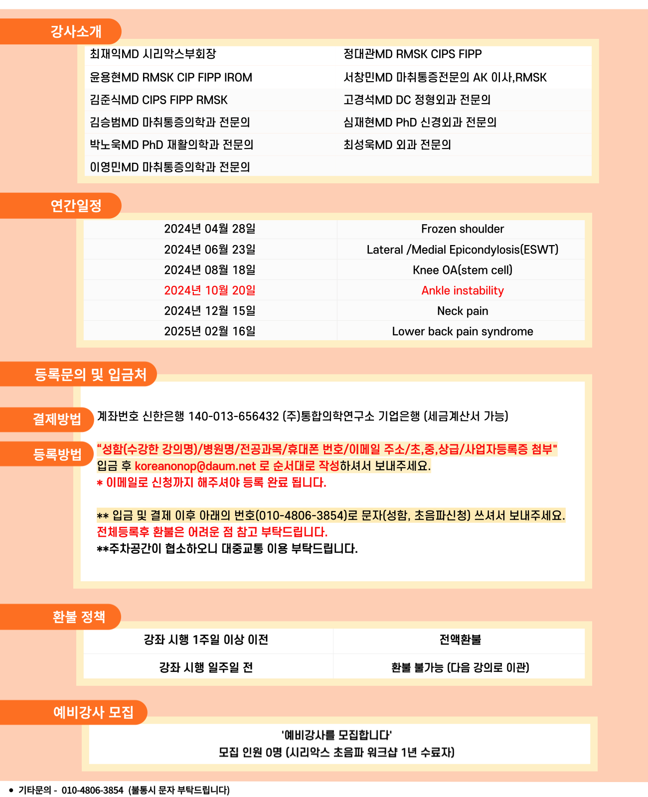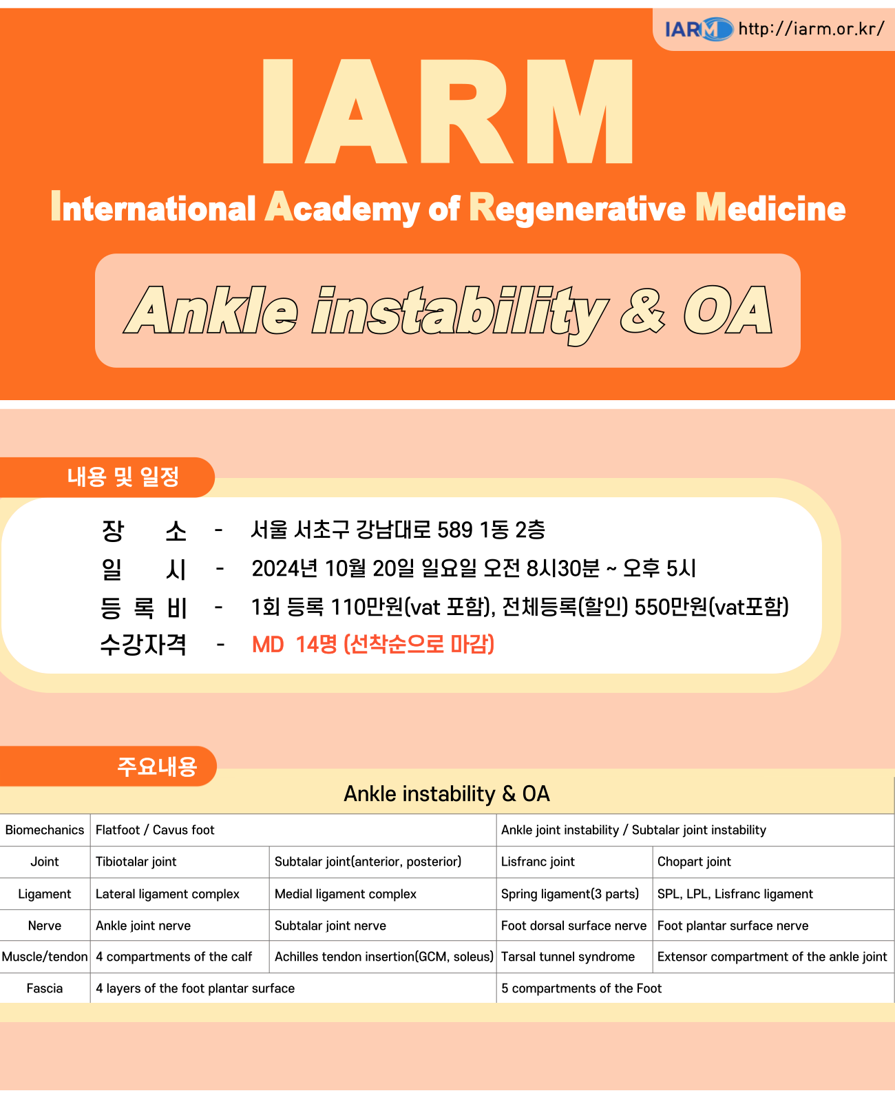 | °ÀǸí : [±Ù°ñ°Ý°è ÃÊÀ½ÆÄ] [10¿ù20ÀÏ]2024³â IARM ÃÊÀ½ÆÄ ¿öÅ©¼¥ - Ankle instability and OA | |||