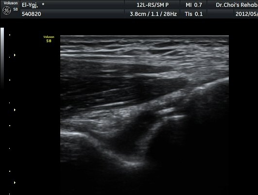 ÃÊÀ½ÆÄ °Ë»ç ÆÈ²ÞÄ¡ ¿ÜÃø Á¾´Ü¸é°Ë»ç¿¡¼ ¼ÒµÎ ¾ÕÂÊ¿¡ ¼ö¾×Àú·ù°¡ °üÂûµÈ´Ù(±×¸² 1). ÆÈ²ÞÄ¡ ³»Ãø Á¾´Ü¸é°ú Ⱦ´Ü¸é°Ë»ç¿¡¼ ȰÂ÷ ¾Õ°ú °¥°í¸®µ¹±â¿Í(coronoid fossa)¿¡ ¼ö¾×Àú·ù°¡ °üÂûµÇ°í °¥°í¸®µ¹±â¿Í¿¡ °í¿¡ÄÚ »À µ¢¾î¸®°¡ °üÂûµÈ´Ù(±×¸² 2, 3). ÁֵοÍ(olecranon fossa) Á¾´Ü¸é°Ë»ç¿Í Ⱦ´Ü¸é°Ë»ç¿¡¼ ÁÖµÎ¿Í ¼ö¾×Àú·ù¿Í °ø¿¡ÄÚ »À µ¢¾î¸®°¡ °üÂûµÈ´Ù(±×¸² 4, 5, 6). ÁÖ°ü Ⱦ´Ü¸é°Ë»ç¿¡¼ °üÀý³» ¼ö¾×Àú·ù¿Í ô°ñ½Å°æÀÇ Ç¥ÃþÀ¸·Î ÀüÀ§°¡ °üÂûµÈ´Ù(±×¸² 7). ÁÖµÎ¿Í È¾´Ü¸é°Ë»ç ¿µ»ó¿¡¼(»çÁø) ÃÊÀ½ÆÄ À¯µµÇÏ¿¡ °üÀý³» Áֻ縦 ½ÃÇàÇÏ¿´´Ù(µ¿¿µ»ó).