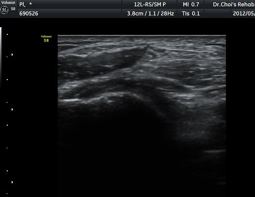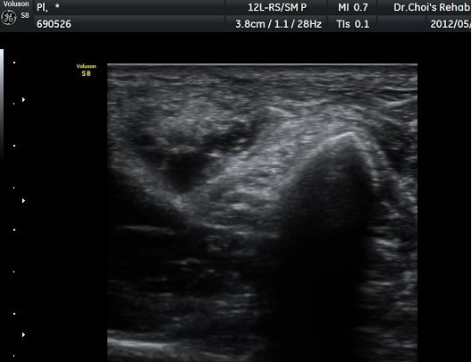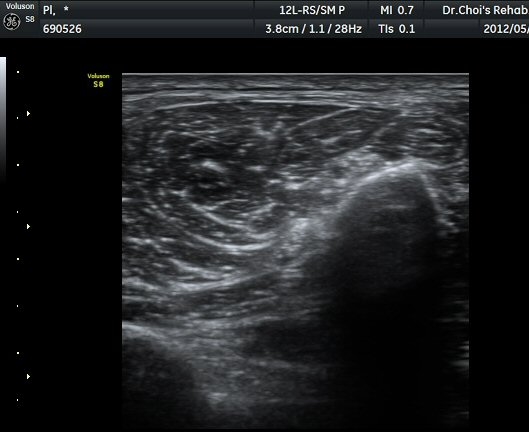 ÃÊÀ½ÆÄ °Ë»ç À´Ù¸®(thigh) ¾Æ·¡ ºÎÀ§ ¿ÜÃø Ⱦ´Ü¸é°Ë»ç¿¡¼ À̵ιڱ٠³»Ãø¿¡¼ ÃѺñ°ñ½Å°æÀÌ Á¤»óÀûÀ¸·Î °üÂûµÈ´Ù(±×¸² 1, 2).