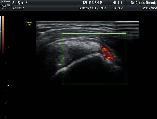 ÃÊÀ½ÆÄ °Ë»ç Á߸³»óÅ ¾î±ú ¾Õ Ⱦ´Ü¸é°Ë»ç¿¡¼ À̺ειڱ٠ÁÖÀ§¿¡ ¼ö¾×Àú·ù°¡ °üÂûµÇ°í(»çÁø 1) ÆÄ¿öµµÇ÷¯
