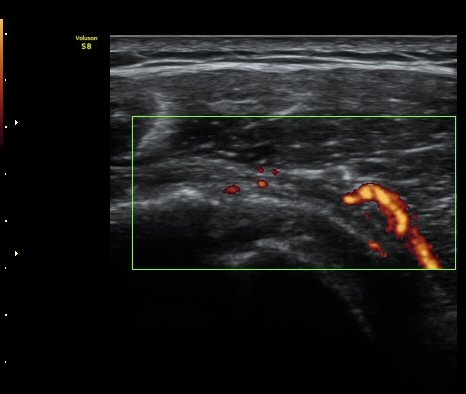 ÃÊÀ½ÆÄ °Ë»ç ȸÀü±Ù°³°£°Ý(rotator cuff interval) Ⱦ´Ü¸é°Ë»ç¿¡¼ Á¡¾×³¶¸Å ¼ö¾× Àú·ù°¡ °üÂûµÈ´Ù(±×¸² 1).