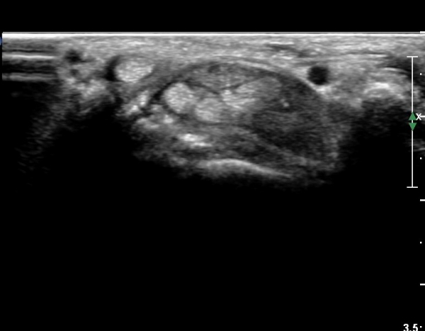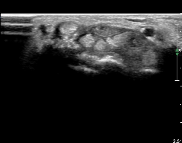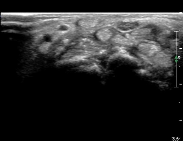 ¼ö±Ù°ü Á¾´Ü¸é°Ë»ç¿¡¼ ±¼°î°Ç ½ÉºÎ¿¡ ¼®È¸È¼º À½¿µÀÌ Á¸ÀçÇϰí Àü¹ÝÀûÀÎ ¼öÁö ±¼°î°ÇÀÇ ºñÈÄ, Á¤Á߽ŰæÀÇ ºÎÁ¾°ú