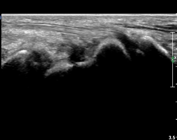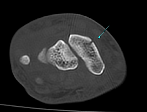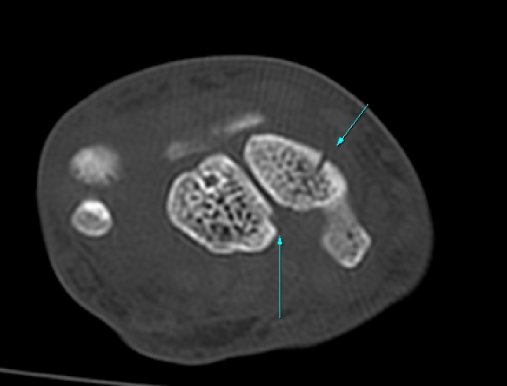 ¼Õ¸ñ ÀåÃø ÁÖ»ó°ñ Á¾´Ü¸é °Ë»ç¿¡¼ ¹Ì¼¼ÇÑ ÁÖ»ó°ñ ÇÇÁú°ñ ¿¬¼Ó¼º ¼Ò½Ç(loss of cortical bone continuity)ÀÌ °üÂûµÊ(»çÁø 1, 2).
