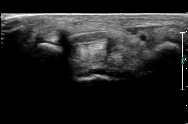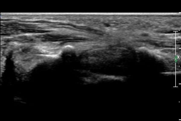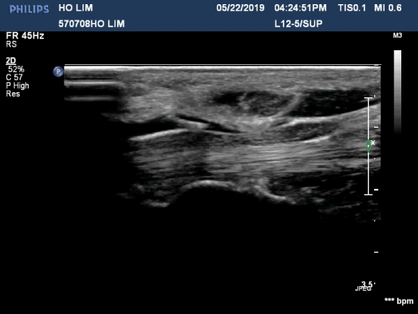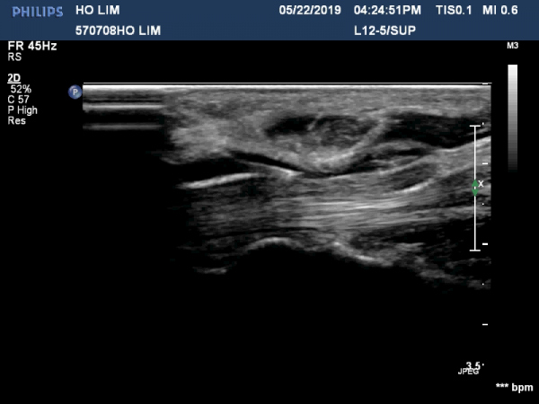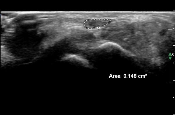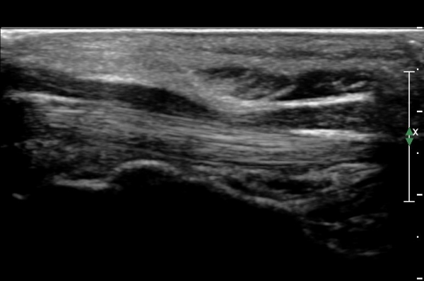¼ö±Ù°ü ±ÙÀ§ºÎ(scaphoid, lunate level)¿¡¼ Á¤Á߽Űæ Ⱦ´Ü¸é°Ë»ç»ó Á¤Á߽ŰæÀÇ Àú¿¡ÄÚ ºÎÁ¾ÀÌ °üÂûµÊ.(»çÁø 2).