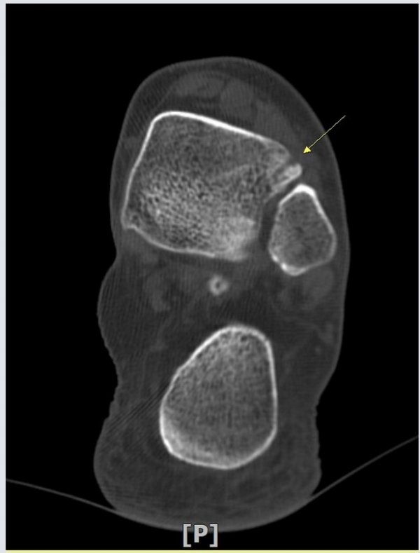 ÃÊÀ½ÆÄ ¼Ò°ß : ¹ß¸ñ ¾Õ Á¾´Ü¸é°Ë»ç¿¡¼ ¹ß¸ñ°üÀý³» ¾à°£ÀÇ ¼ö¾×Àú·ù°¡ °üÂûµÊ(»çÁø 1).
