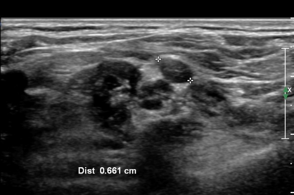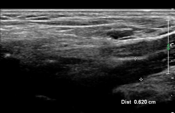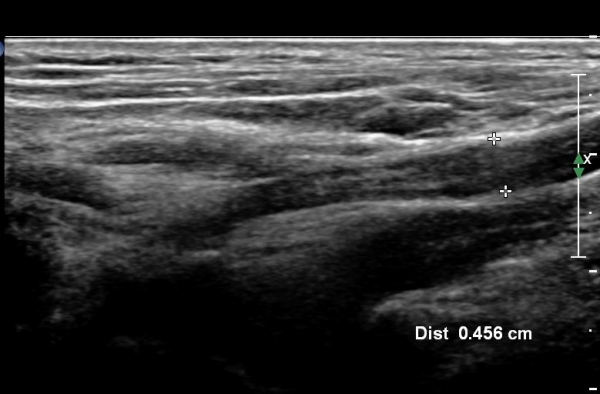 ÃÊÀ½ÆÄ °Ë»ç : ÁÂÃø ¸ñ ¾Õ ¿ÜÃø¿¡¼ °üÂûÇÑ Á¦5°æÃß ½Å°æ±Ù Ⱦ´Ü¸é°Ë»ç¿¡¼ Á¦5°æÃß ½Å°æ±ÙÀÇ °æ¹ÌÇÑ Àú¿¡ÄÚ ºÎÁ¾ÀÌ °üÂûµÊ(»çÁø 1).