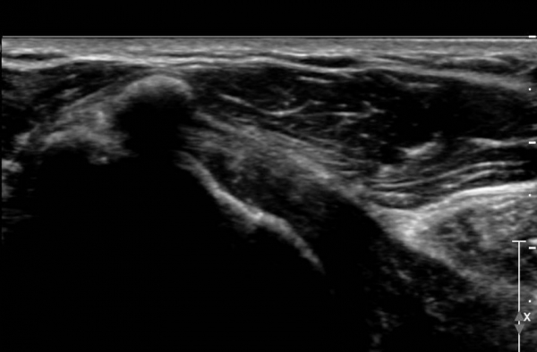 °ß°©ÇÏ±Ù°Ç Á¾´Ü¸é°Ë»ç(»çÁø 2)¿Í ȸ´Ü¸é°Ë»ç(»çÁø 2)¿¡¼ ÈĹæÀ½¿µÀ» º¸ÀÌ´Â °í¿¡ÄÚ ¼®È¸°¡ °üÂûµÈ´Ù. Åë»óÀûÀÎ °ß°©ÇÏ±Ù°Ç Á¾´Ü¸é°Ë»ç¿¡¼´Â °ß°©ÇÏ±Ù°Ç »óºÎ ¼®È¸È·Î º¸ÀÌÁö¸¸ Ⱦ´Ü¸é°Ë»ç·Î º¼ ¶§ °ß°©ÇÏ±Ù°Ç ÇϺο¡ ¹ß»ýÇÑ ¼®È¸ÀÓÀ» ¾Ë ¼ö ÀÖ´Ù.