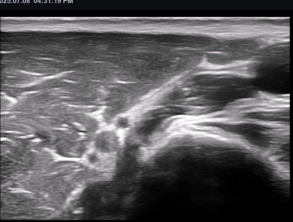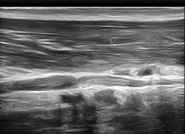 ÃÊÀ½ÆÄ ¼Ò°ß : »ó¹Ú ³»Ãø ±ÙÀ°ÇǺνŰæ Ⱦ´Ü¸é°Ë»ç ¿¡¼ ±ÙÀ°ÇǺνŰæÀÇ Àú¿¡ÄÚ ºÎÁ¾ÀÌ °üÂûµÈ´Ù(»çÁø 1). ŽÃËÀÚ¸¦ Á¶±Ý ¸»´ÜÀ¸·Î À̵¿ÇÏ´Ï ±ÙÀ°ÇǺνŰæÀÇ À§ÃàÀÌ °üÂûµÇ°í(»çÁø 2) ŽÃËÀÚ¸¦ Á¶±Ý ´õ ¸»´ÜÀ¸·Î À̵¿ÇÏ´Ï ±ÙÀ°ÇǺνŰæÀÌ Á¤»êÀûÀ¸·Î °üÂûµÈ´Ù(»çÁø 3). ÷ºÎ µ¿¿µ»ó¿¡¼ ±ÙÀ°ÇǺνŰæÀÇ À§¿Í °°Àº º¯È¸¦ Àß º¸¿©ÁØ´Ù(Ŭ¸¯). ±ÙÀ°ÇǺνŰæÀÇ Á¾´Ü¸é°Ë»ç¿¡¼ ±ÙÀ°ÇǺνŰæÀÇ ±¹¼ÒÀû ÇùÂø°ú ±ÙÀ§ºÎÀÇ Àú¿¡ÄÚ ºÎÁ¾ÀÌ °üÂûµÈ´Ù (»çÁø 4, 5, 6,7) À̰ÍÀº ½Å°æÀÇ ¿°Àü(torsion)¿¡ ºÎÇÕÇÏ´Â ¼Ò°ßÀÌ´Ù. ½Å°æ º´º¯ÀÇ ÇǺο¡ Ç¥½Ã ÷ºÎÆÄÀÏ 5